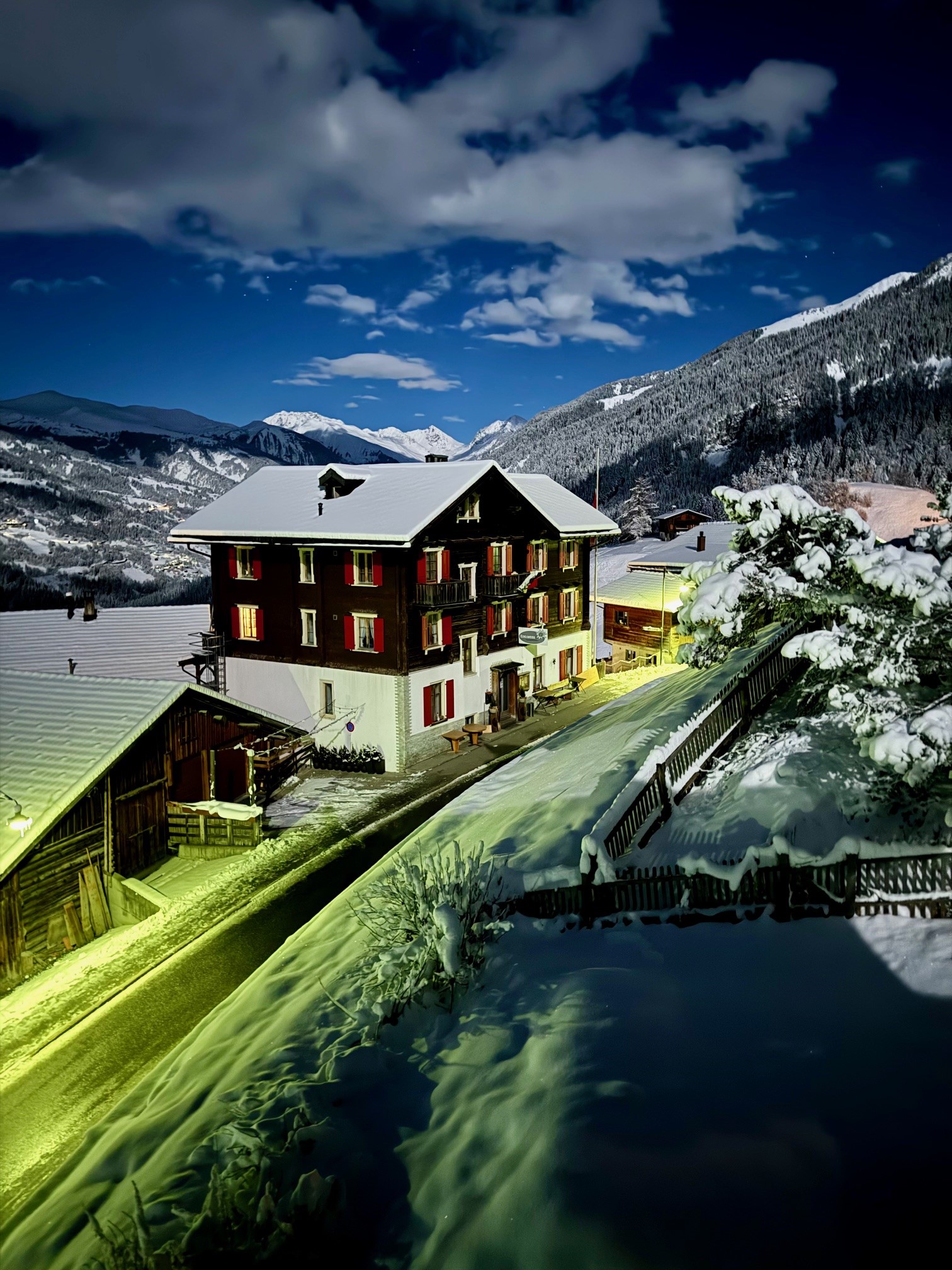 Wir sind wunderbar gelegen am Dorfeingang von dem idyllischen Ferienort Tschiertschen in Graubünden. Neben unserer gemütlichen "Bündnerstube" verfügen wir im Sommer über ein schönes "Sunnagärtli" sowie einen Speisesaal & einfache Gästezimmer.
